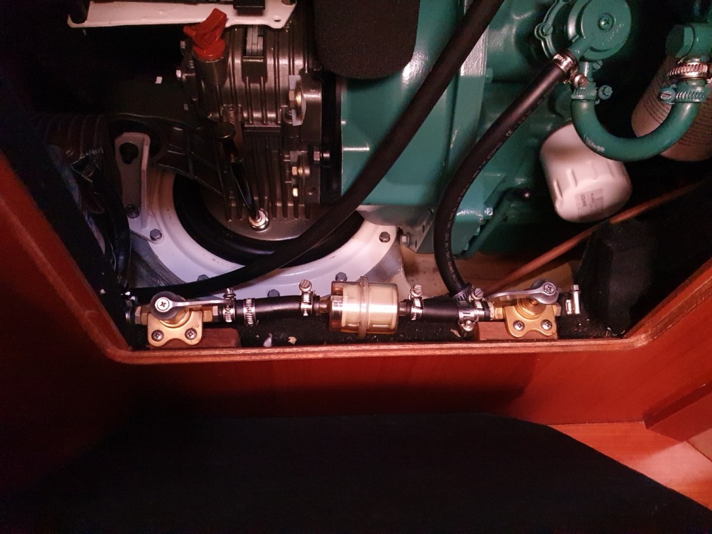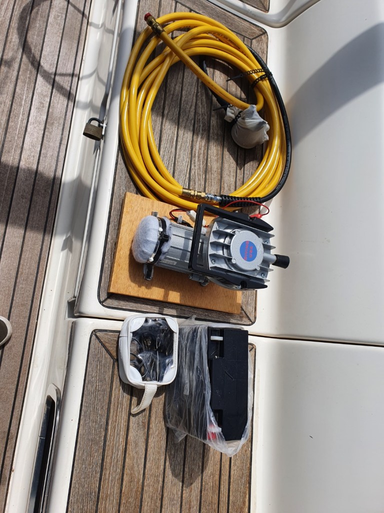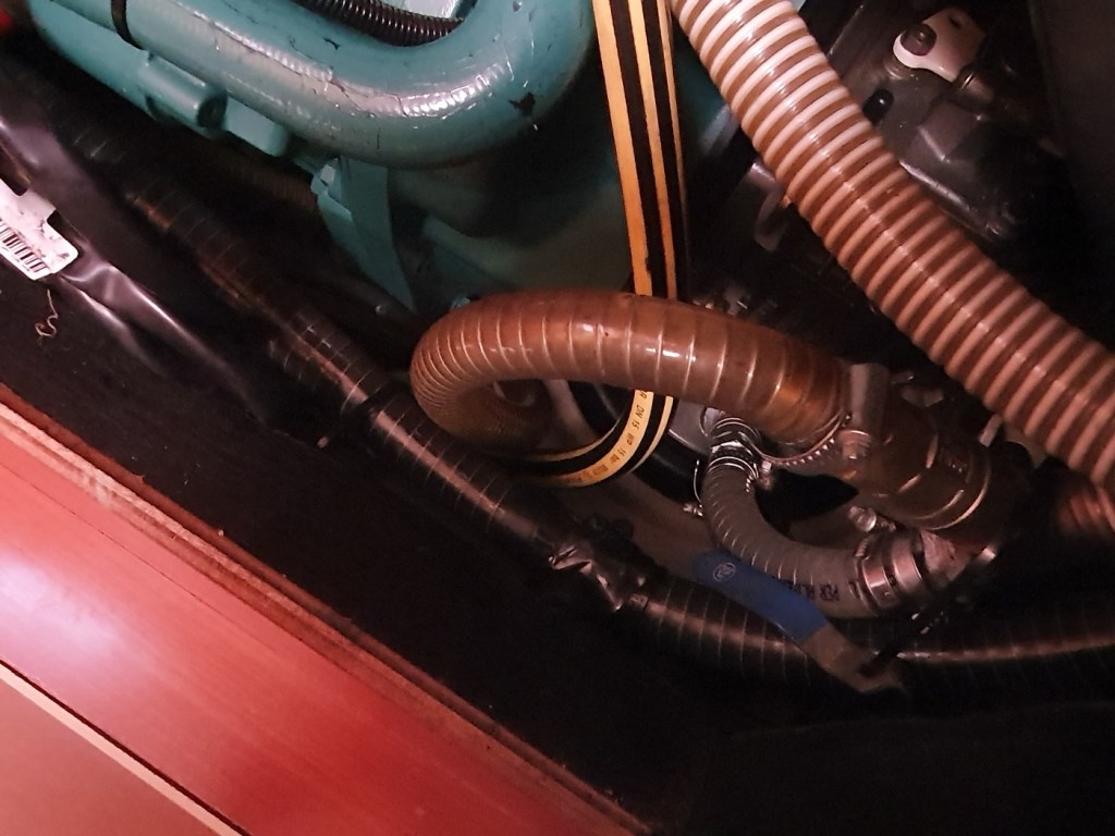 Un extractor de aire (solar) integrado en la escotilla del comedor permite mantener el barco libre de humedades. En su UTIL inventario dispone de cabos (como no), de decenas de grilletes, pasadores etc. de todo tipo, los recambios de filtros y correas, poleas preparadas (Para genaker y mucho más) y una idea que me parece excelente, un bypass de gasoil que va desde depósito a motor eludiendo filtros (por si se produce una obstrucción)