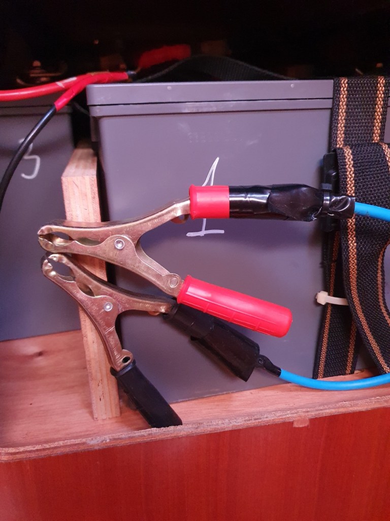 Electricidad: Dispone baterías de AGM con termómetros de temperatura conectados para revisar posible sobrecalentamiento. Además, en la mesa de bañera dispone de un aviso de la carga actual de las mismas. También tiene un pequeño cable que actúa de posible puente en caso de fallo en una de las áreas de baterias (Servicio/motor) que permite, de forma inmediata usar la otra área como fuente de suministro.
