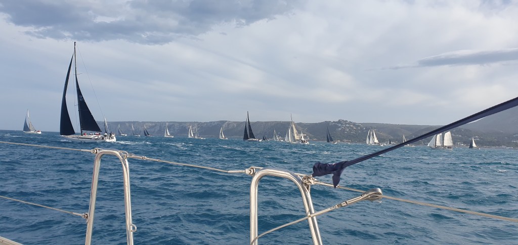 A las 5pm dan la salida oficial de la regata, con viento de 17 kn que rápidamente sube a 22.